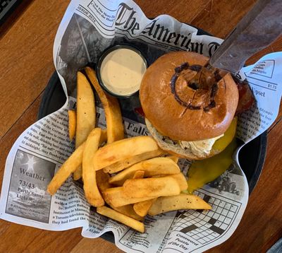 The Yippee Ki Yay burger has pulled pork, fried onions, Bud's Original BBQ sauce, and American cheese. The John McClane is two all beef hot dogs topped with pulled pork, fried onions, Bud's Original BBQ sauce, and American cheese. Oh, and did we mention, you can order traditional wings with Bud Sauce here too!?! 🤤