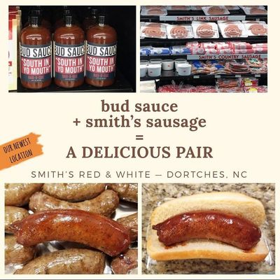 In June 2018, Smith's Red & White in Dortches, NC is the second store to take a chance on Bud Sauce 🙌🏼. We are so grateful! And if you are looking for a DELICIOUS pairing, look no further than Smith's Sausage & Bud Sauce.